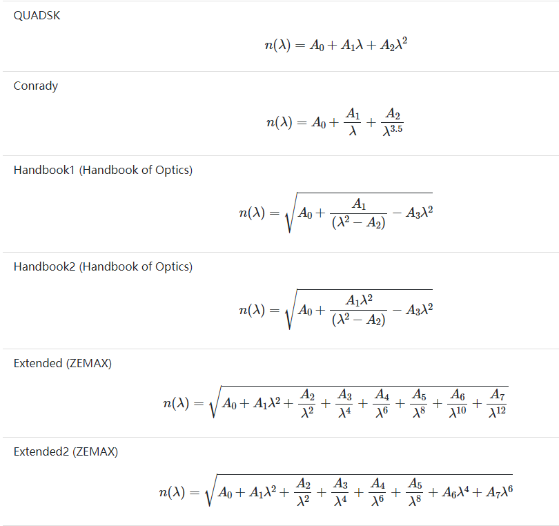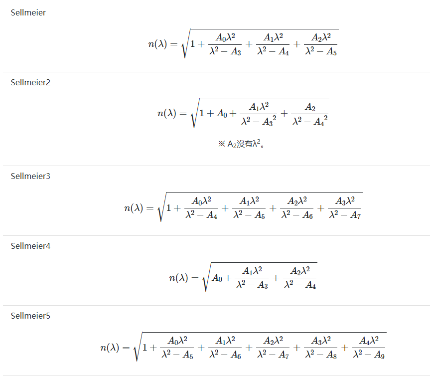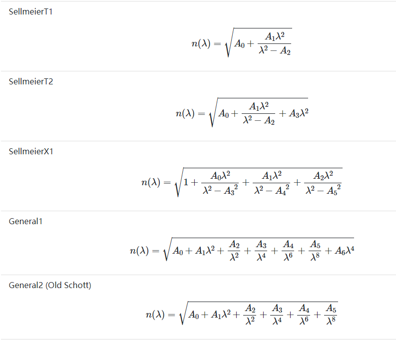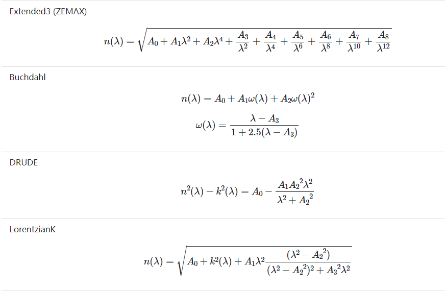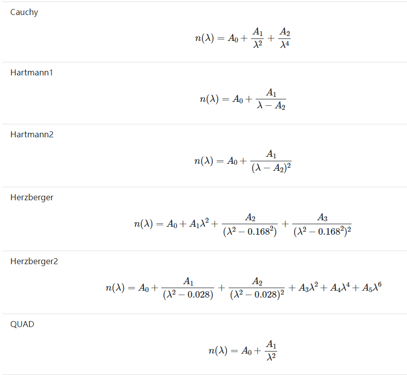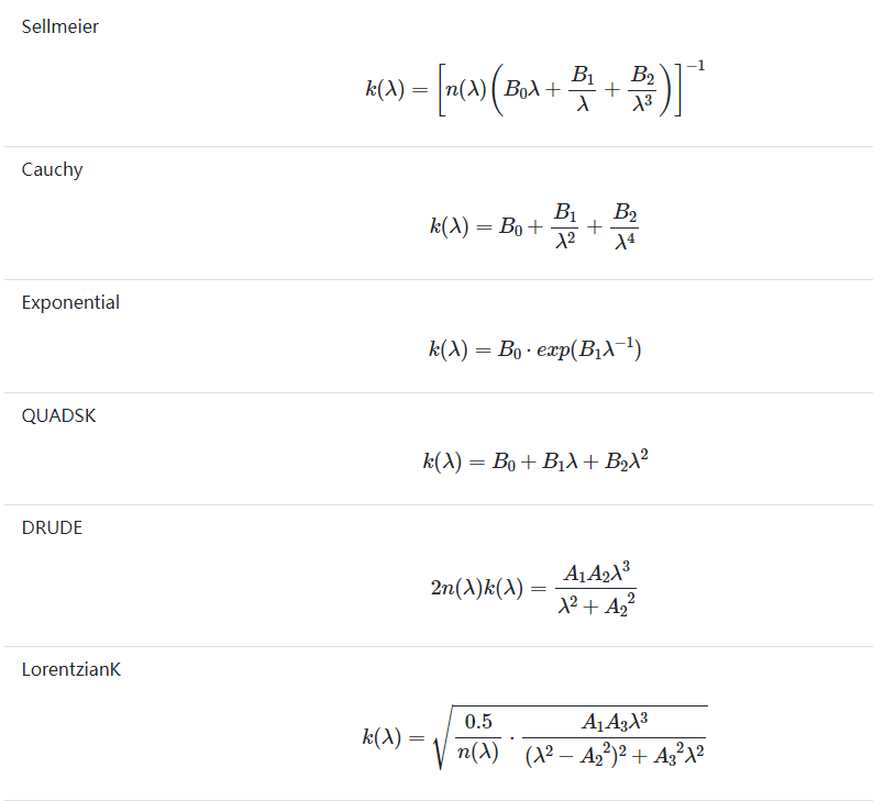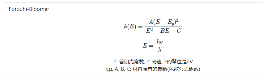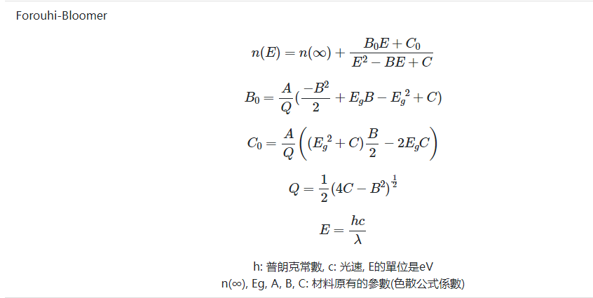λ的单位为μm (不包括Forouhi-Bloomer)。